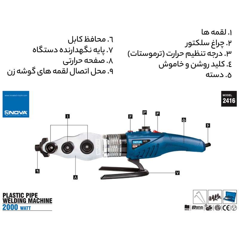 دستگاه اتو لوله سبز نووا مدل NTW-2416 ابزاری قدرتمند و حرفهای است که برای اتو کردن و اتصال لولههای سبز در پروژههای ساختمانی و تاسیساتی طراحی شده است. این دستگاه با قابلیتهای منحصر به فرد، کار را سریعتر و با دقت بیشتری انجام میدهد.